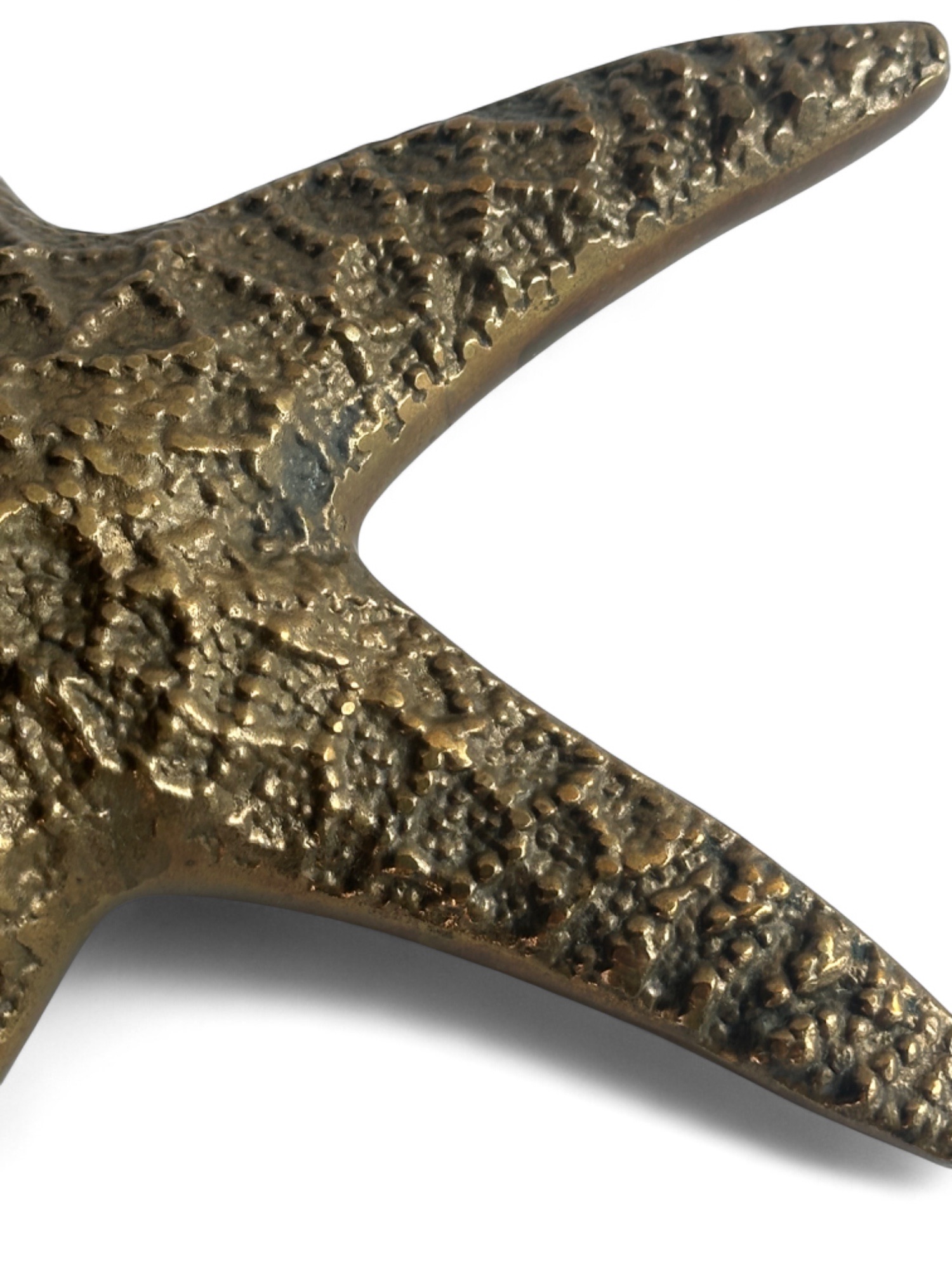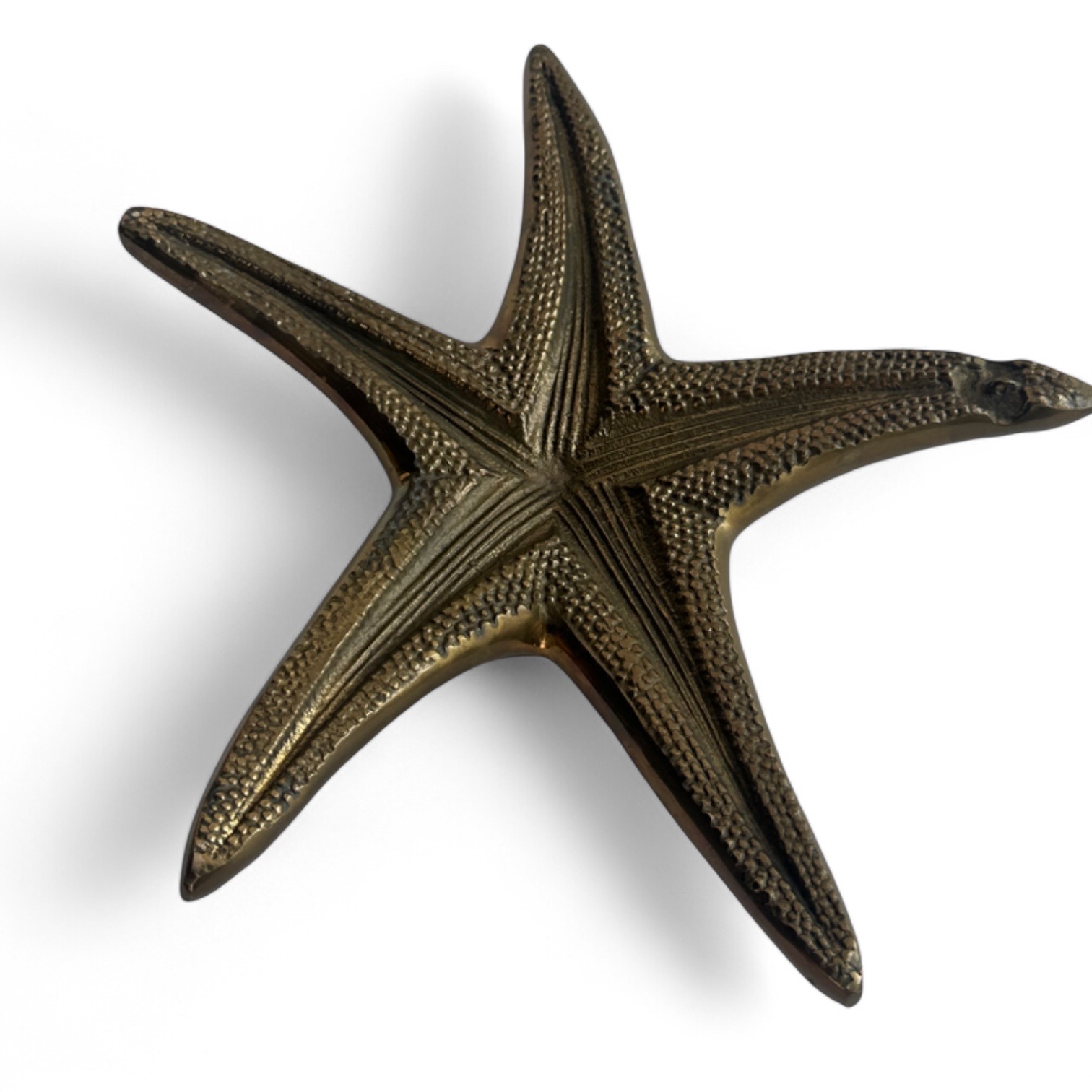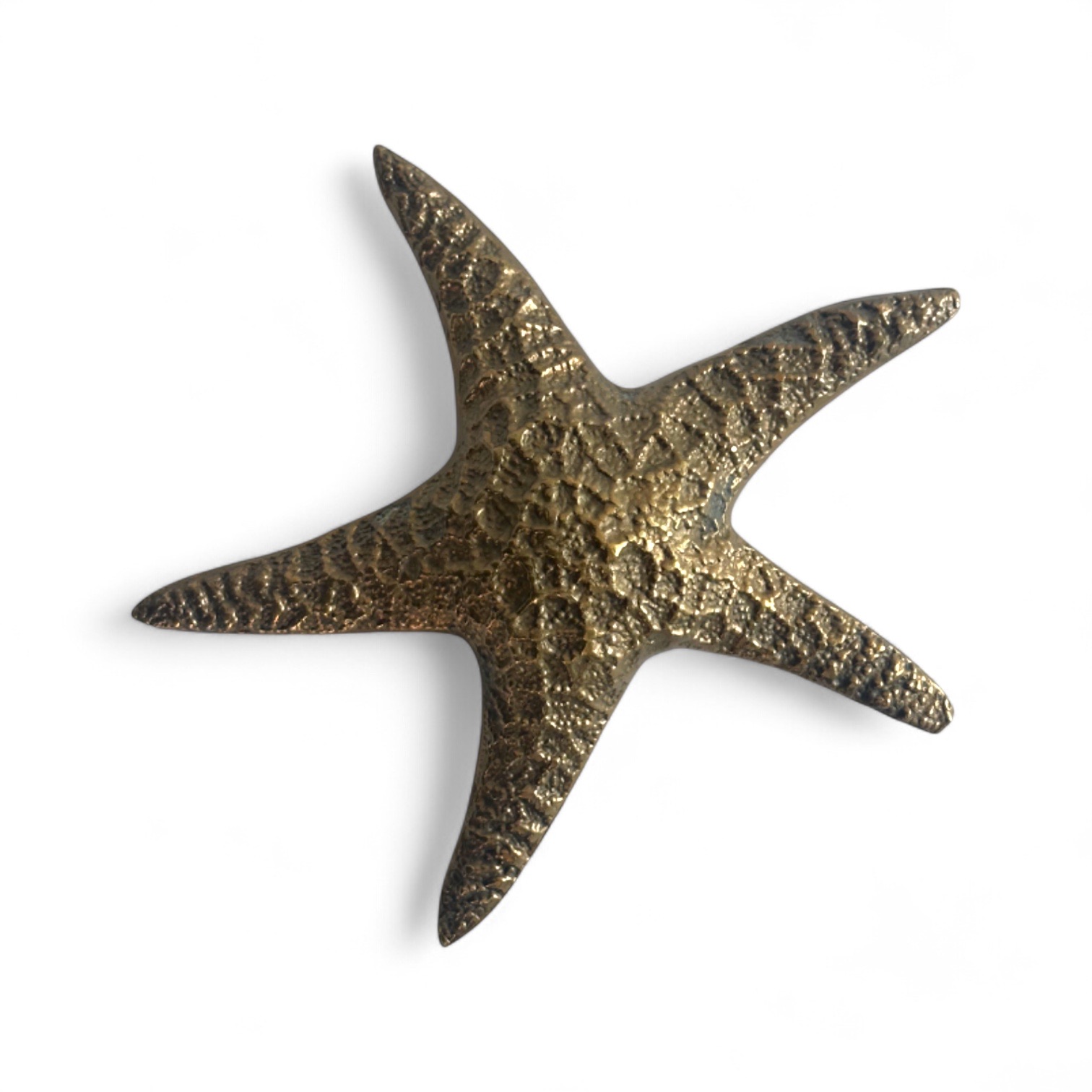 Decorative solid brass starfish measuring 10″ wide by 10″ deep and 2″ high. A compact accent piece suited for tabletop or shelf display.