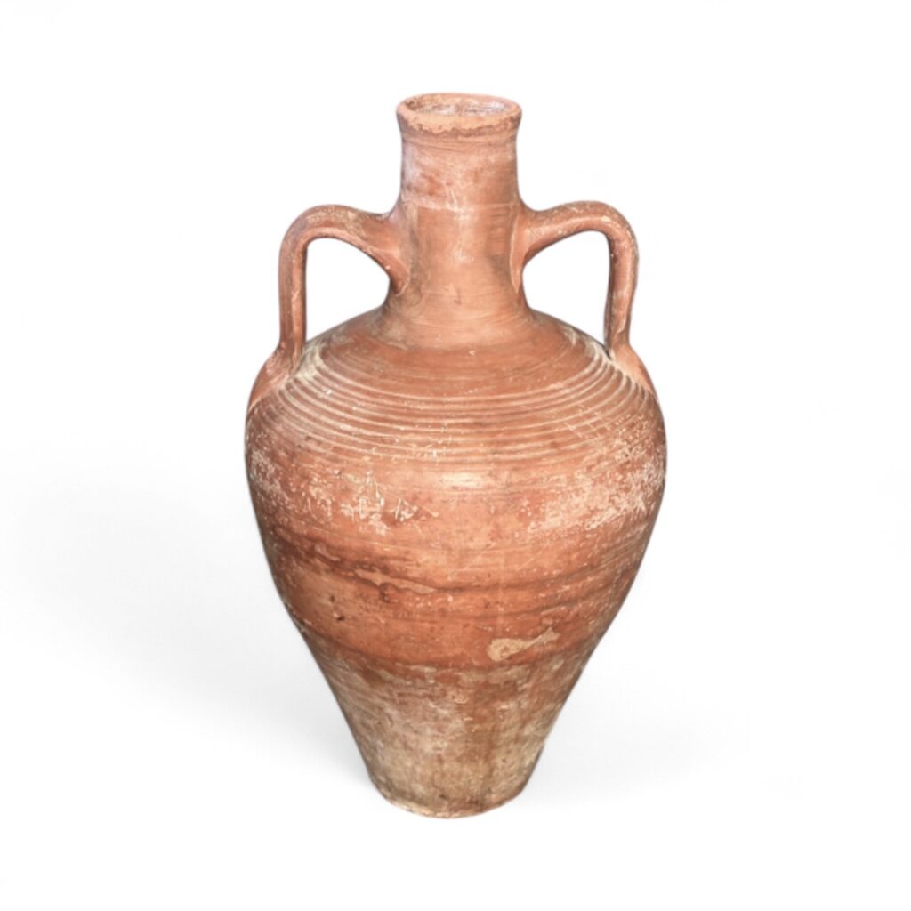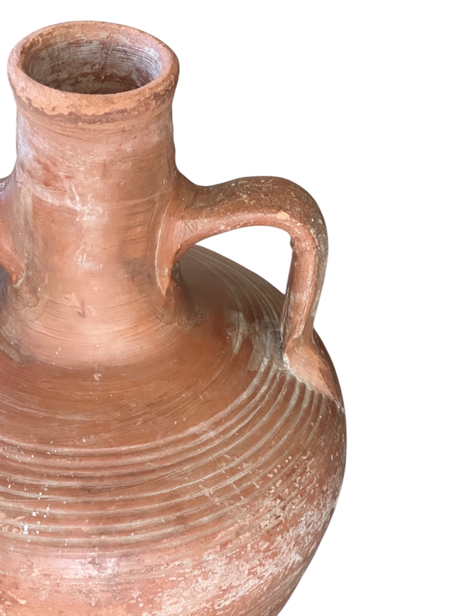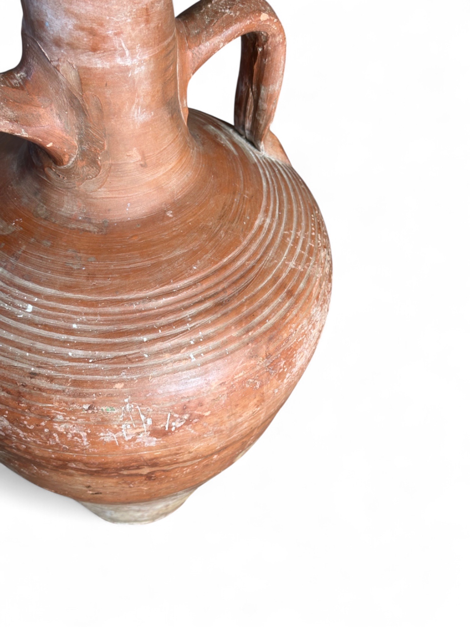 Tall hand-thrown terracotta jug with dual side handles. Measures 12″ in diameter and stands 20″ high.