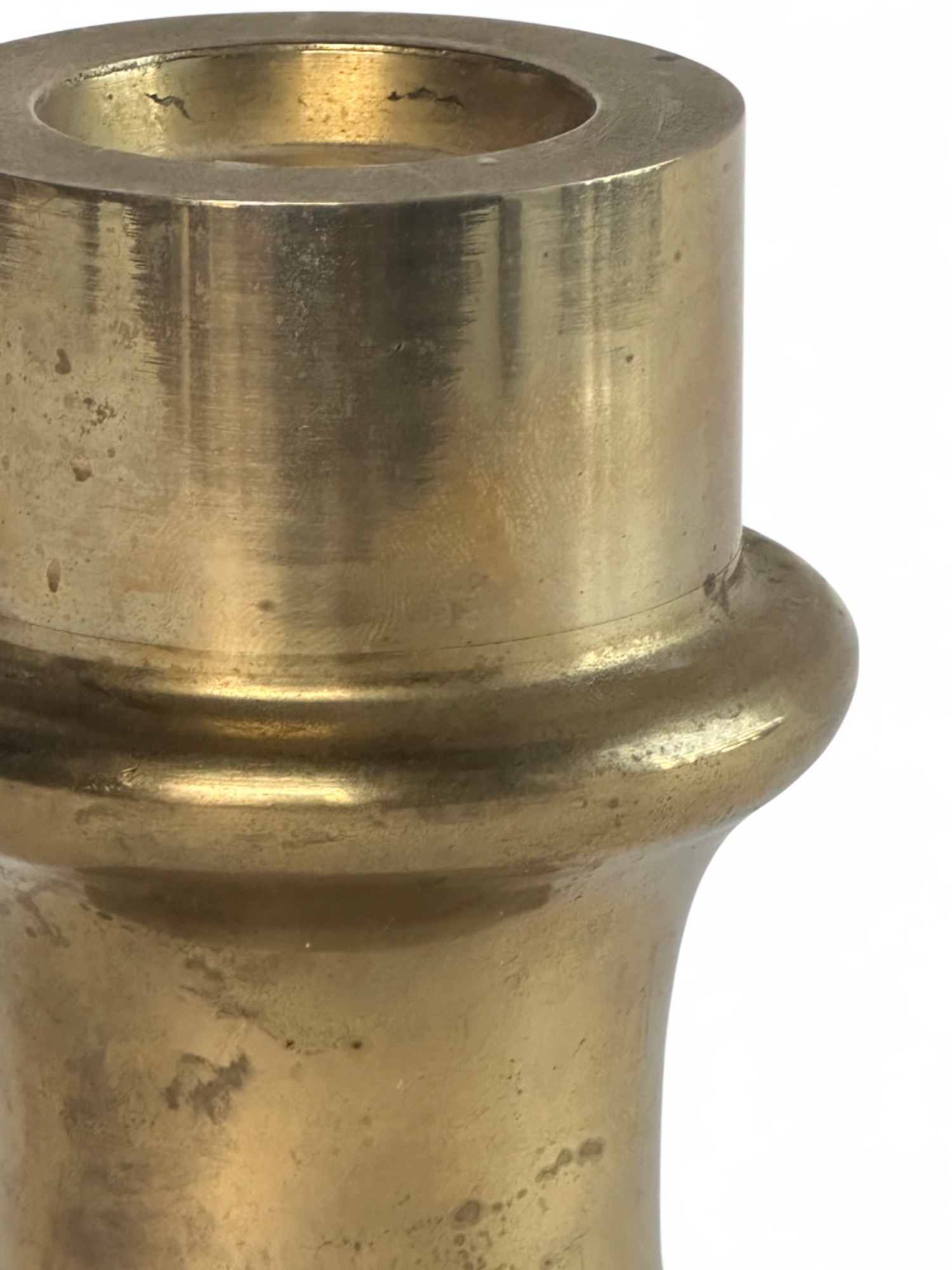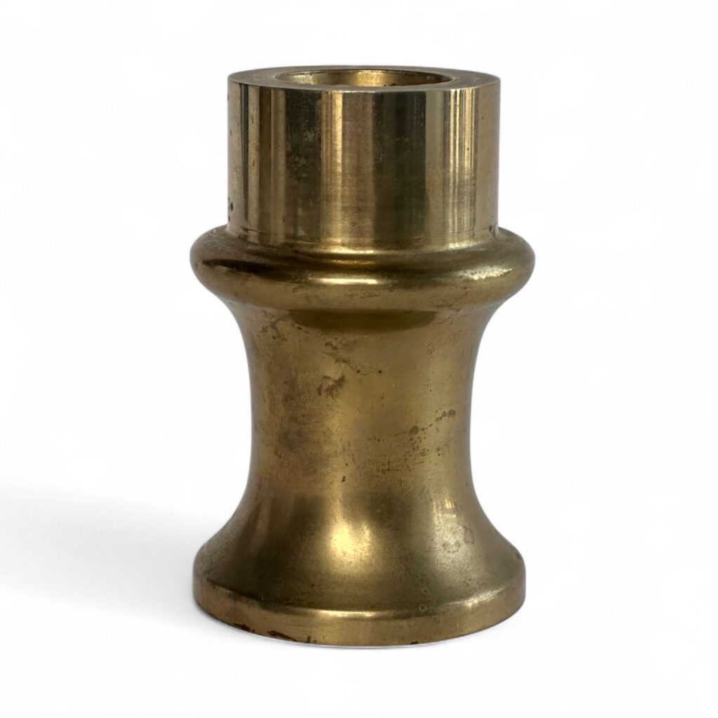 Solid brass candleholder with modern profile. Measures 3.25″ in diameter and 5″ in height.