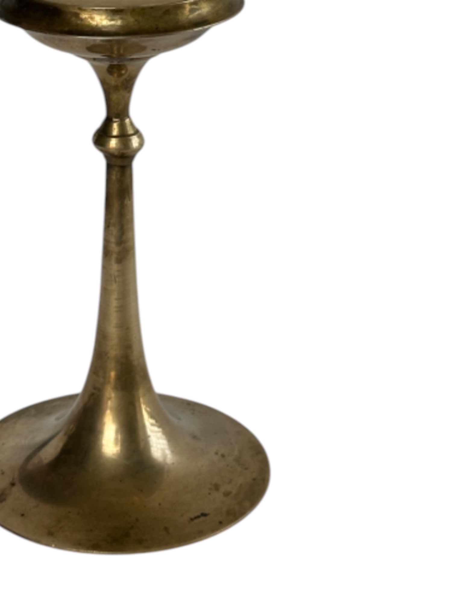Natural ostrich egg mounted on a turned brass stand. Measures 5″ Dia. x 13″H overall.