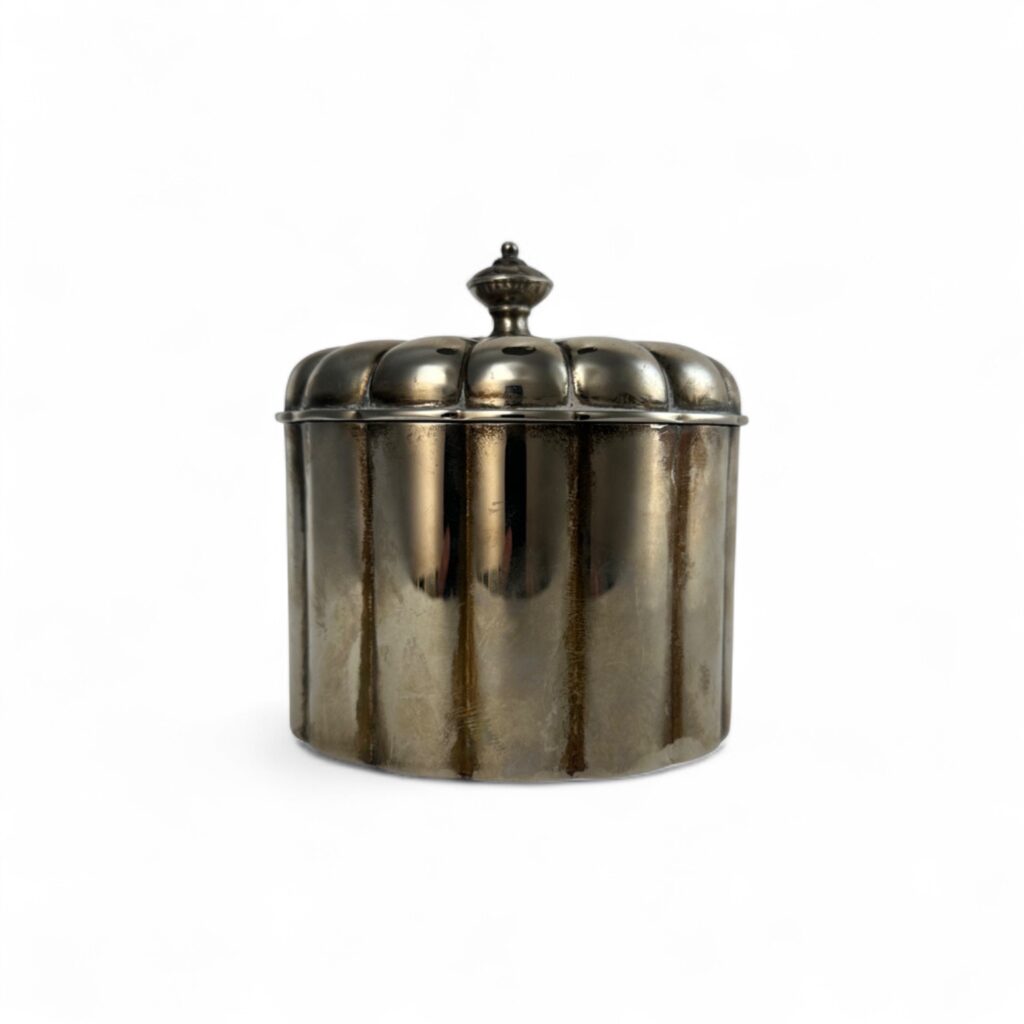 Ribbed Silver Plated Box w/ Finial Handle